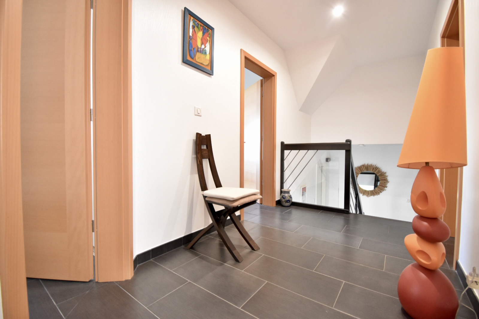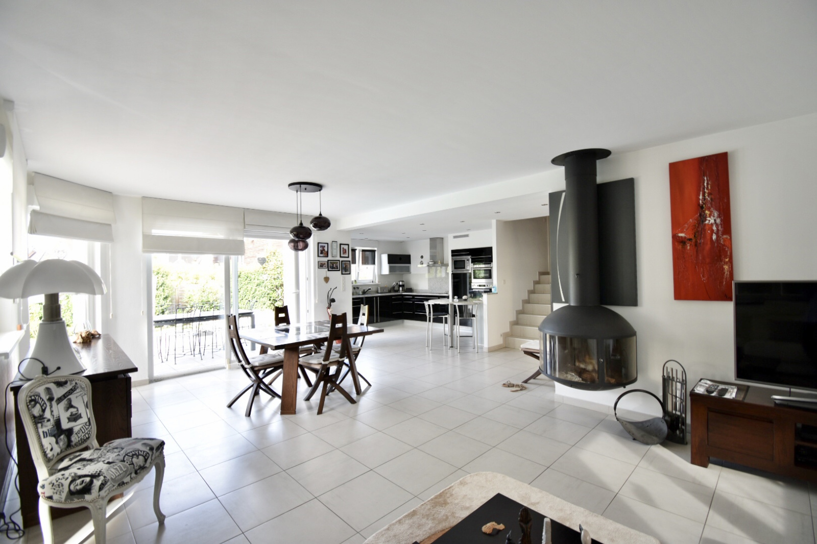 Construite en 2008 et régulièrement entretenue, cette belle maison contemporaine toute en 1/2 niveaux, vous offre une entrée avec placards et wc, un vaste et lumineux séjour de 40 m2 avec sa cheminée et sa cuisine ouverte qui ajoute 14m2 de volume supplémentaire à la pièce de vie.